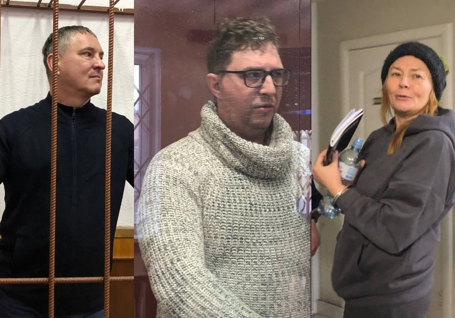 Left to right: Sokolov, Kachanov, Zakharova in court. Photos: Mediazona